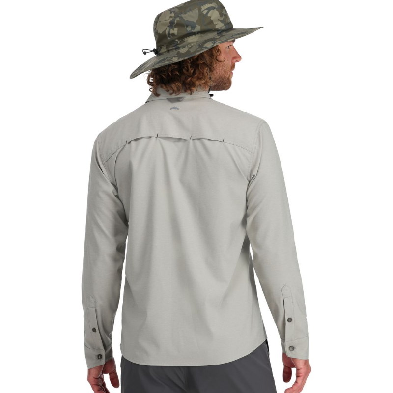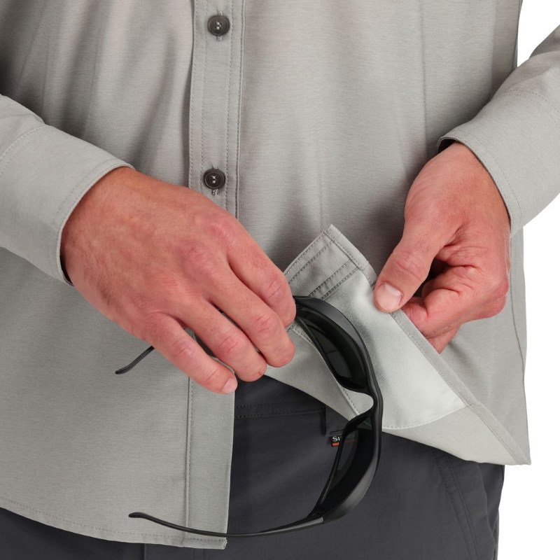 Simms Challenger Shirt to koszula outdoorowa wykonana z lekkiej, melanżowej tkaniny poliestrowej, która zapewnia elastyczność i szybkie schnięcie. Sprawdza się podczas aktywności na świeżym powietrzu, szczególnie w cieplejszych warunkach, gdzie liczy się wygoda i swoboda ruchów. Klasyczny kołnierzyk, zapięcie na guziki oraz przedłużony tył podkreślają uniwersalny charakter koszuli, która dobrze prezentuje się zarówno podczas wędkowania, jak i codziennego użytkowania.