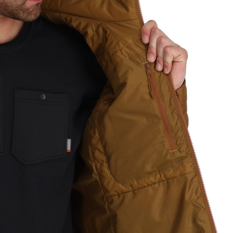 Simms Fall Run Collared Jacket to kurtka zaprojektowana z myślą o jesiennych wyprawach wędkarskich. Sprawdza się podczas chłodniejszych dni, oferując dodatkową warstwę ocieplenia dzięki zastosowaniu izolacji PrimaLoft Black Eco 60g w korpusie. Gładkie wykończenie zewnętrzne ułatwia noszenie kurtki pod spodniobutami lub kombinezonem typu bib.