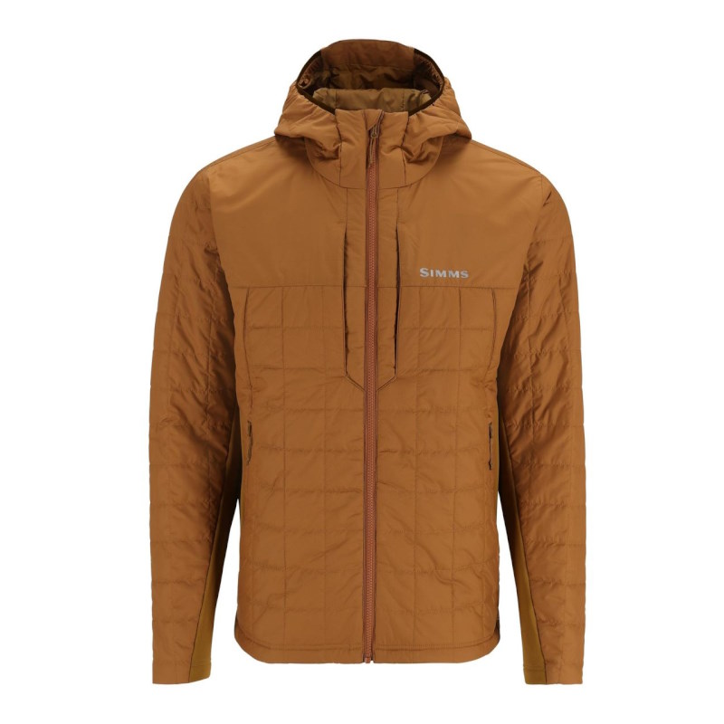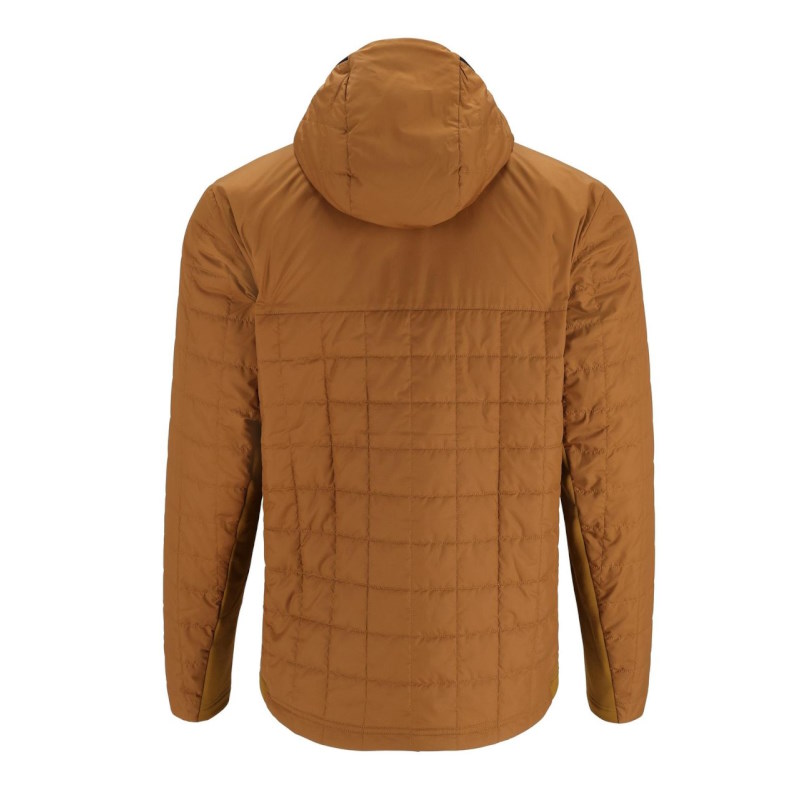 Simms Fall Run Hybrid Hoody Cobia M to hybrydowa kurtka z kapturem, zaprojektowana jako lekka warstwa zewnętrzna lub środkowa. Sprawdza się podczas aktywności outdoorowych, gdzie liczy się swoboda ruchów i ochrona przed wilgocią. Konstrukcja łączy izolację PrimaLoft® Black Eco w korpusie z elastycznymi panelami z polaru pod pachami i po bokach, co przekłada się na wygodę podczas noszenia wędzisk, zakładania wodery czy pracy na łodzi.
