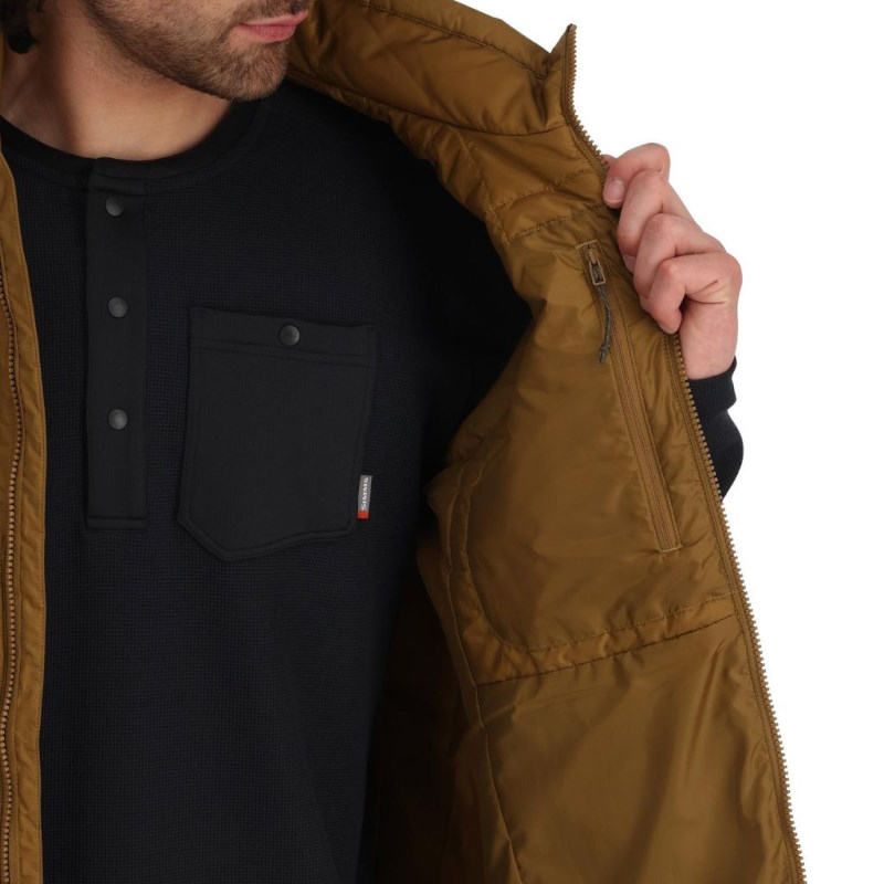 Simms Fall Run Vest Bronzeback 3XL to lekka kamizelka ocieplana, zaprojektowana do noszenia jako warstwa docieplająca w chłodniejsze dni. Sprawdza się podczas aktywności outdoorowych, takich jak wędkarstwo, zwłaszcza w okresie jesiennym, gdy temperatura potrafi zaskoczyć. Kamizelka wyposażona jest w ocieplinę PrimaLoft® Black Eco o gramaturze 60g, która zapewnia skuteczną ochronę przed chłodem bez nadmiernego obciążenia.