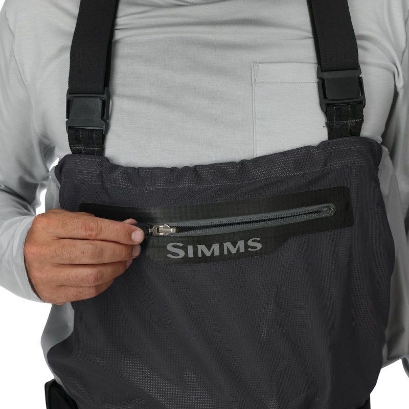 Simms Flyweight Stockingfoot to lekkie, wodoodporne spodnie wędkarskie typu wader, które można łatwo spakować do własnej kieszeni na piersi. Sprawdzają się podczas wielodniowych wypraw, gdzie liczy się wygoda transportu oraz szybkie przygotowanie do łowienia. Model ten oferuje regulację wysokości – od pasa do klatki piersiowej – dzięki innowacyjnemu systemowi szelek, co pozwala dostosować ochronę do aktualnych warunków nad wodą.