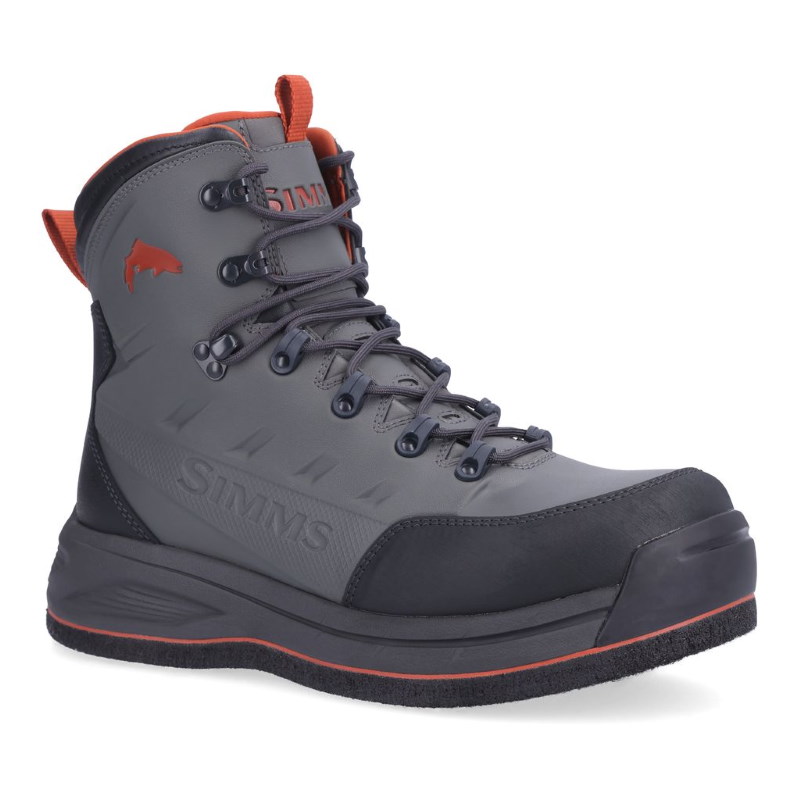 Simms Freestone Boot Felt Gunmetal 09 to buty wędkarskie zaprojektowane do brodzenia w zróżnicowanych warunkach terenowych. Model ten wyróżnia się trwałością oraz przyczepnością, co pozwala na bezpieczne poruszanie się po śliskich kamieniach i w nurcie rzeki. Wzmocnienia na palcach i pięcie zwiększają odporność na uszkodzenia mechaniczne podczas kontaktu z podłożem.