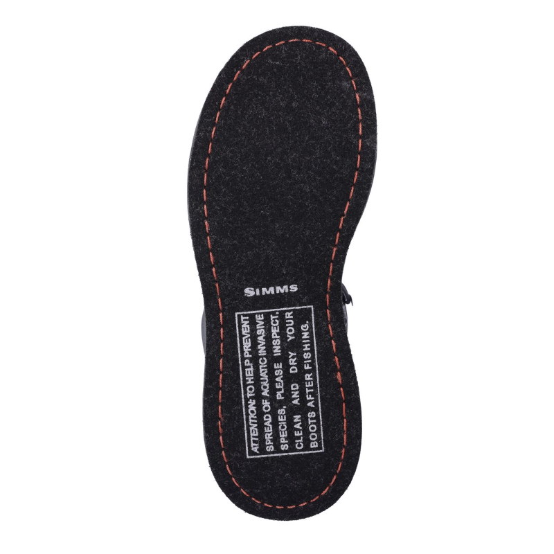 Buty sprawdzają się podczas długotrwałego przebywania w wodzie, zarówno na brzegu, jak i w trakcie brodzenia. Częściowa wyściółka z neoprenu ułatwia zakładanie i zdejmowanie obuwia, a podeszwa z filcu o grubości 12 mm jest kompatybilna z kolcami Simms Hardbite Felt Studs, co pozwala na dodatkowe dopasowanie do warunków terenowych.