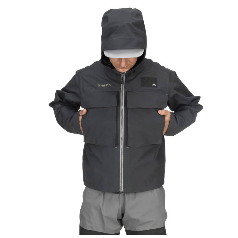 Simms Guide Classic Jacket Carbon 3XL to kurtka przeciwdeszczowa zaprojektowana z myślą o aktywnościach outdoorowych, zwłaszcza wędkarstwie. Sprawdza się podczas intensywnych opadów deszczu, oferując skuteczną ochronę przed wilgocią dzięki zastosowaniu 3-warstwowej membrany GORE-TEX. Krój o długości do pasa ułatwia korzystanie z wodera oraz umożliwia głębokie brodzenie w wodzie.
