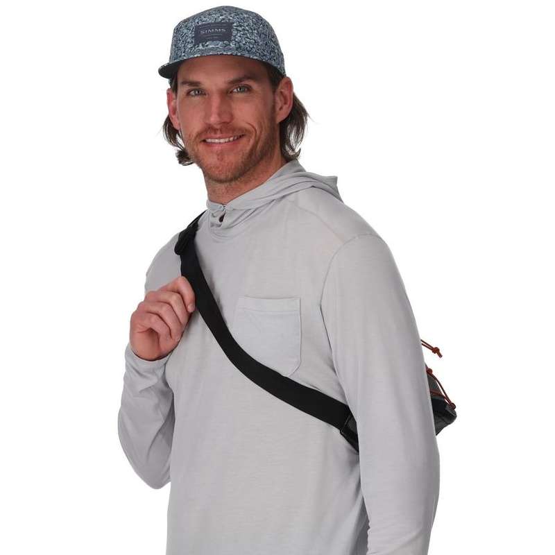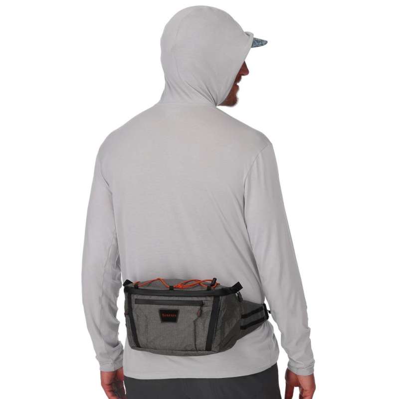 Simms Scout Hip Pack Black Magic to kompaktowa torba biodrowa, która sprawdza się podczas wędkowania zarówno w terenie miejskim, jak i w trudniejszych, górskich warunkach. Wykonana z wytrzymałego materiału Challenger Sailcloth, oferuje odporność na intensywne użytkowanie w terenie.