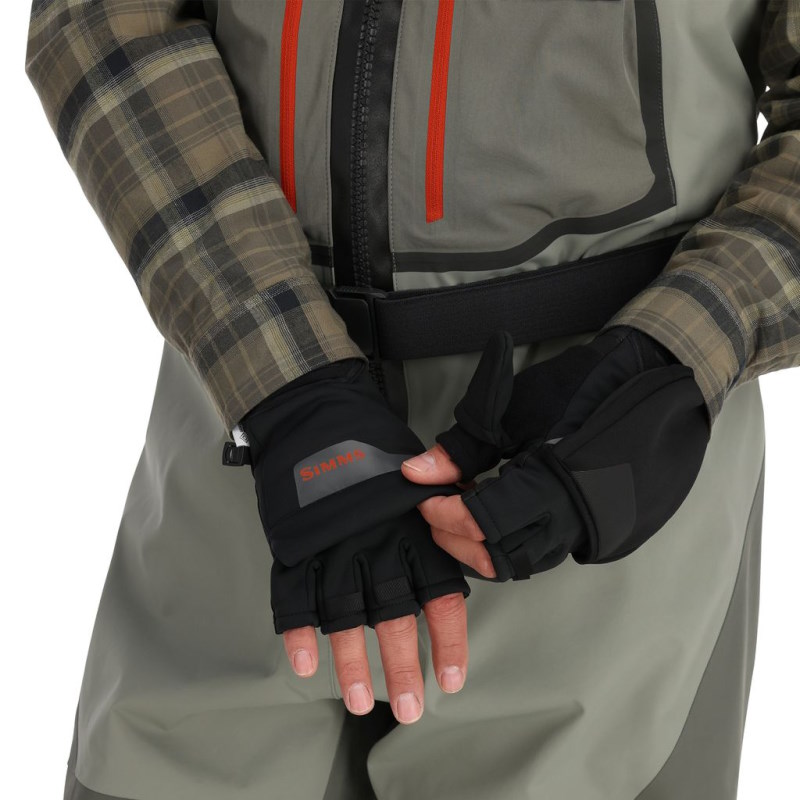 Simms Windstopper® Foldover Mitt Black L to rękawice wędkarskie zaprojektowane do użytkowania podczas chłodnych dni nad wodą. Model ten łączy funkcjonalność jednopalczastej rękawicy z wygodą rękawiczki z odkrytymi palcami, co pozwala na szybkie przejście między ochroną przed zimnem a precyzyjną obsługą wędki.