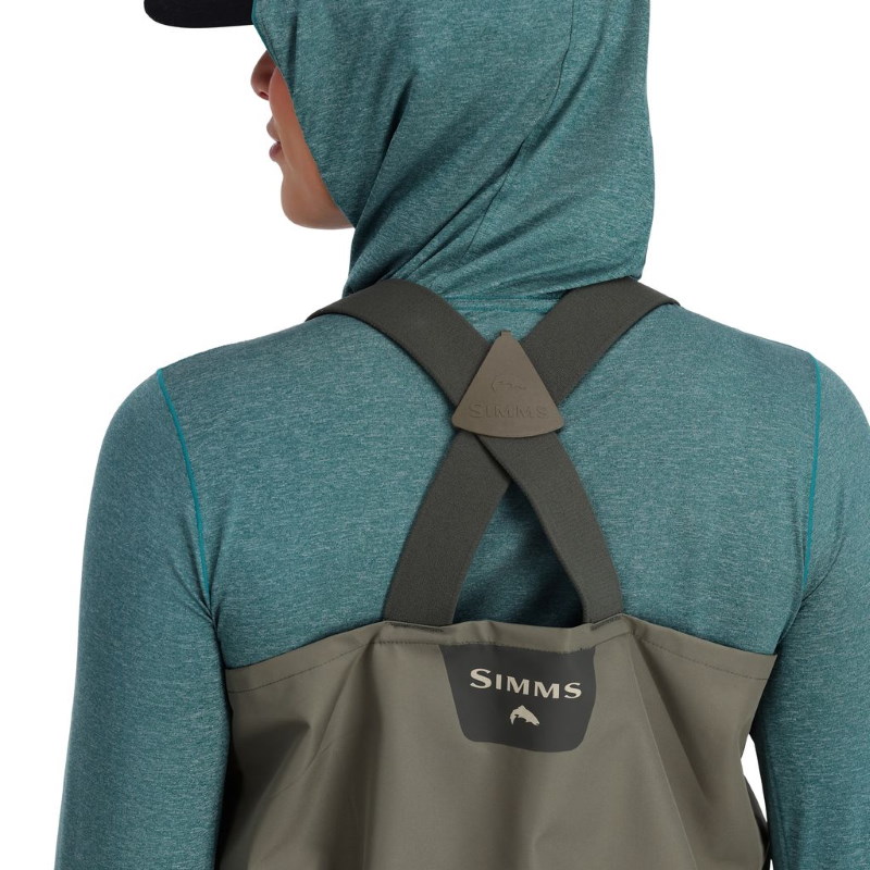 Simms Wms Tributary Stockingfoot Basalt L to damskie spodniobuty przeznaczone do brodzenia w wodzie. Model ten sprawdza się podczas wędkowania zarówno z brzegu, jak i w płytkich partiach rzek czy jezior, gdzie niezbędna jest ochrona przed wilgocią i chłodem. Górna część wykonana jest z trójwarstwowego, oddychającego i wodoodpornego poliestru, a dolna z czterowarstwowego materiału, co przekłada się na zwiększoną wytrzymałość w miejscach najbardziej narażonych na przetarcia.