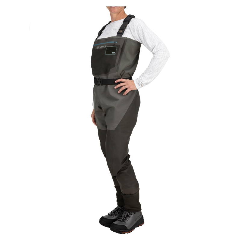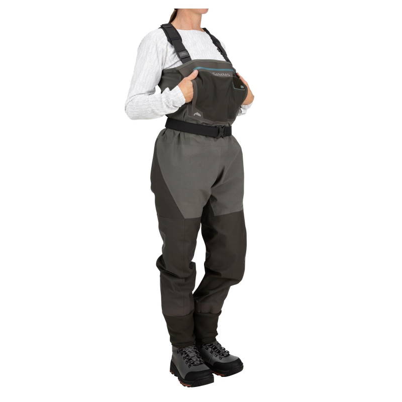 Simms Women's G3 Guide Stockingfoot Gunmetal L to damskie wodery przeznaczone do wędkarstwa, które wyróżniają się nową wersją pakietu materiałowego oraz udoskonalonym krojem dopasowanym do kobiecej sylwetki. Model ten sprawdza się podczas długich dni spędzonych nad wodą, zarówno na brzegu, jak i w brodzeniu, oferując zwiększoną wygodę użytkowania dzięki zastosowaniu elastycznego materiału w górnej części.