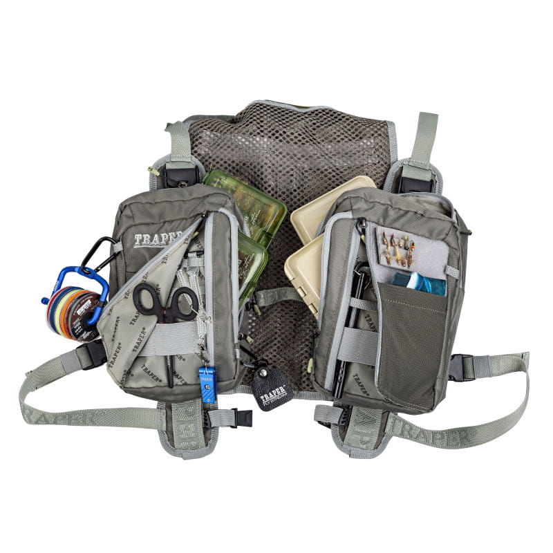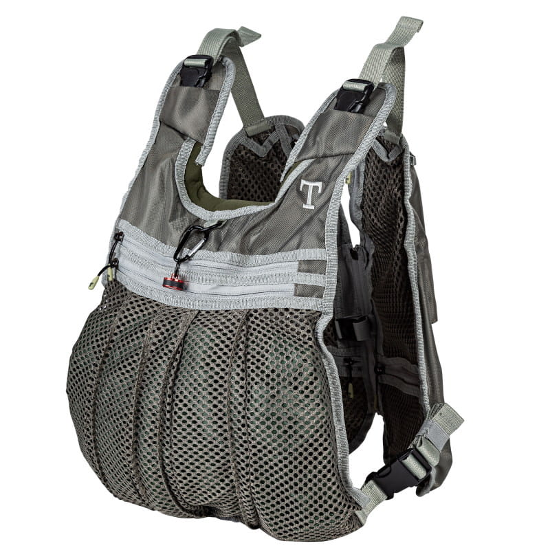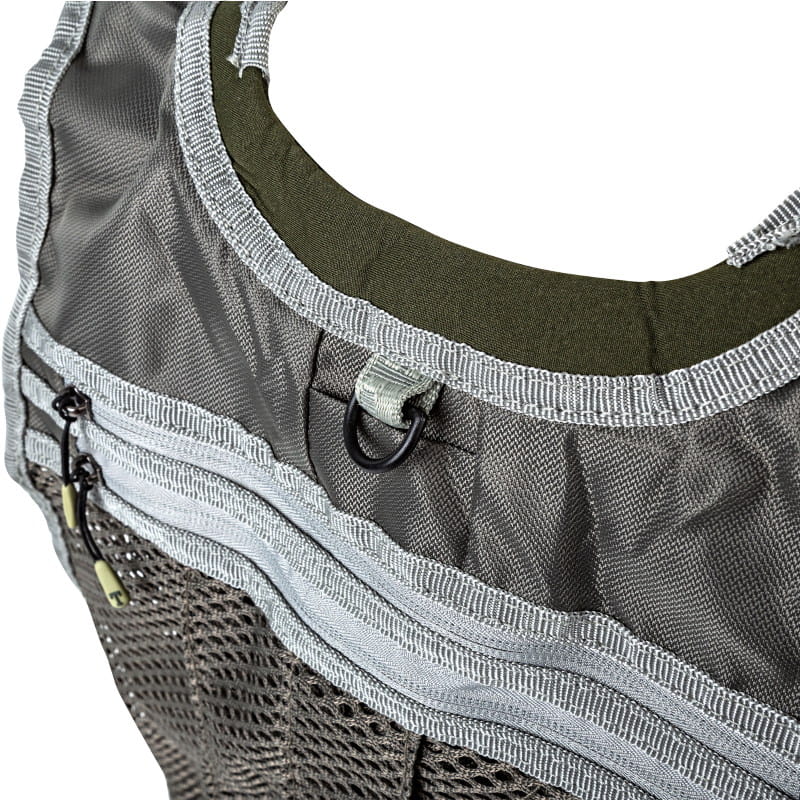W kamizelce Combo Light zastosowano innowacyjny system mocowania kieszeni. Obszerne kieszenie przymocowane są do listew, po których można je przesuwać. Dzięki temu możemy zmieniać ich wysokość zamocowania przy głębokim brodzeniu. Każda z kieszeni składa się z trzech zasuwanych komór oraz kieszeni z elastycznej siatki. W jednej z kieszeni znajdują się dwa sprężynowe zaczepy na obcinaczkę i szczypce. Plecy wykonane są z siatki na których znajdują się dwie zasuwane kieszenie. Pod neoprenowym kołnierzykiem umieszczony jest zaczep do podbieraka. Odpinana przednia część może być przypięta do plecaka Active Combo.